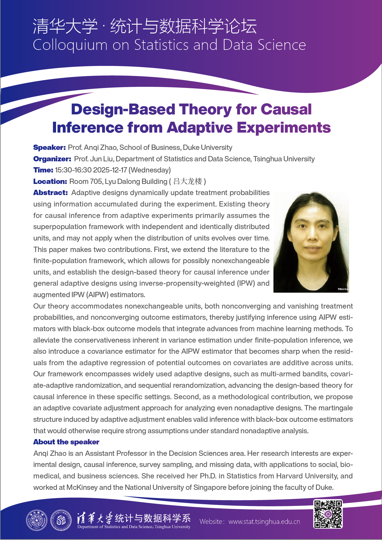 【统计与数据科学论坛】Design-based theory for causal inference from adaptive experiments