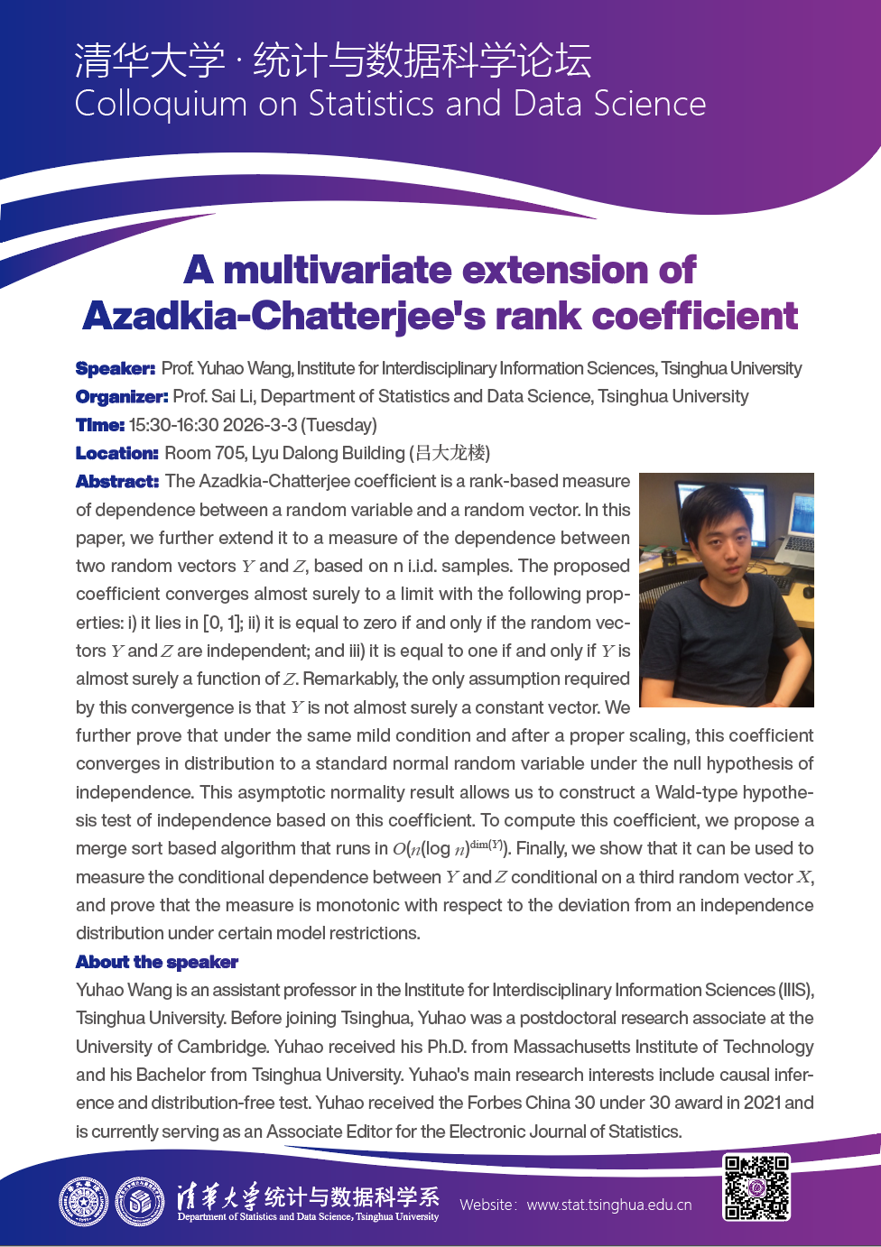 【统计与数据科学论坛】A multivariate extension of Azadkia-Chatterjee's rank coefficient
